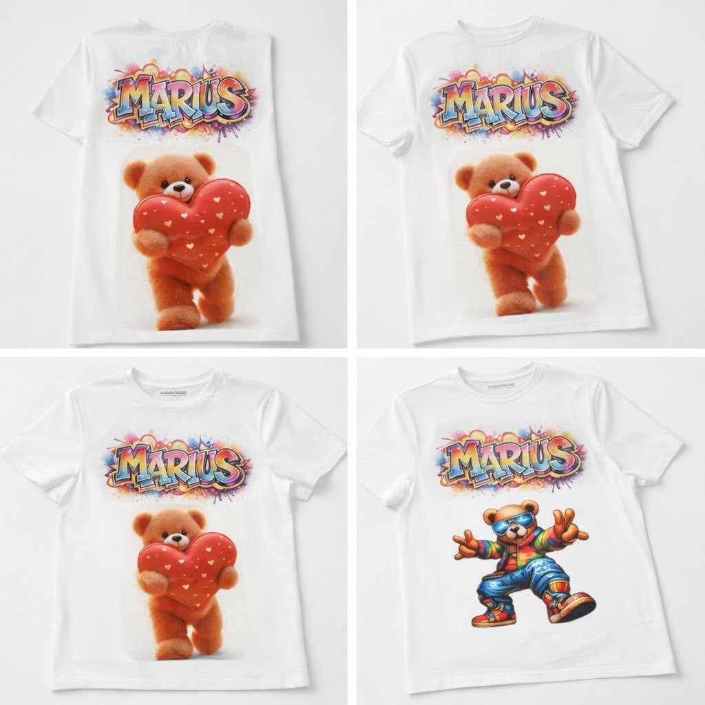 La nostra T-shirt personalizzata con nome è pensata per rendere ogni bambino protagonista. Il design con l’orsetto e il cuore (oppure versione street style) unisce dolcezza e stile moderno, perfetto per ogni occasione.